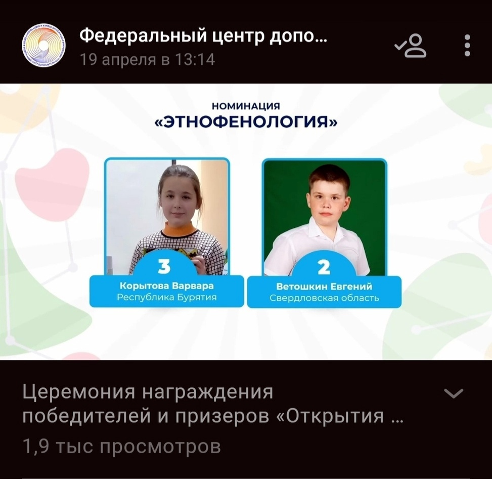 Диплом за 2-е место в Финале Всероссийского конкурса "Моя Малая родина: природа, культура, этнос" - у Свердловской области!