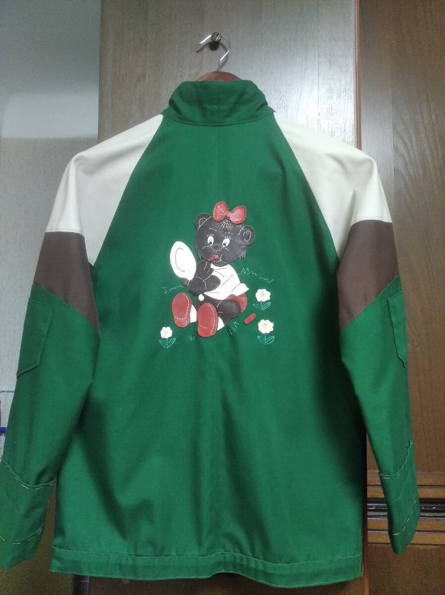 Но куртку так и не закончила. На верхнем фото даже видна наметка на рукавах. Долгое время, перебирая вещи, все хотела пристроить куда-нибудь эту аппликацию. Вот сейчас, видимо, настало время.