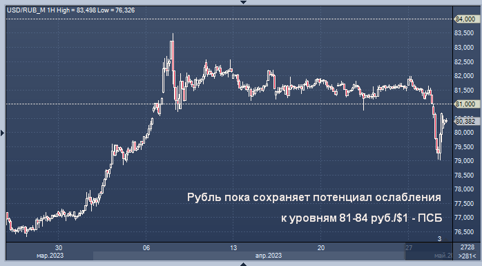 Рубль пока сохраняет потенциал ослабления к уровням 81-84 руб./$1 - ПСБ