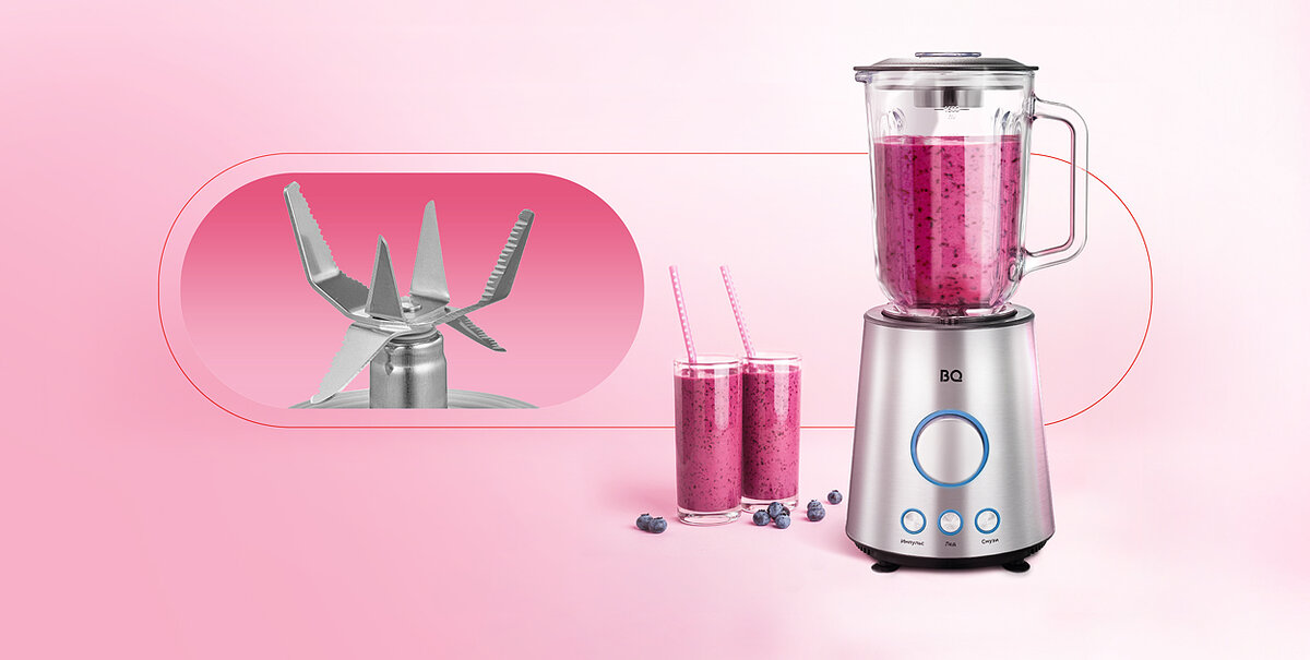 В ассортименте бренда представлено 17 моделей стационарных и ручных блендеров, измельчителей. Они помогают готовить смузи, делать арахисовую пасту и фирменные соусы. Эти приборы могут мелко нарезать овощи и фрукты, измельчить мясо в фарш, дробить орехи. Специалисты бренда BQ расскажут, что умеют делать блендер и измельчитель. А также объяснят чем отличаются ручного и стационарного блендера. Стационарный блендер представляет собой чашу с ножами-лезвиями, установленную на базу. База плотно фиксируется на поверхности с помощью ножек-присосок. Чаша может быть выполнена из пластика или стекла, материал влияет на прочность прибора и твердость продуктов, которые он способен измельчить. Модели различаются также мощностью, объемом чаши и количеством режимов работы. К примеру, у стационарного блендера BQ SB1000 мощность – 2000 Вт и чаша объемом 1,5 литра. Эти характеристики позволяют измельчать до 1 кг мяса на фарш, дробить орехи для приготовления конфет, делать смузи и пюре сразу на несколько