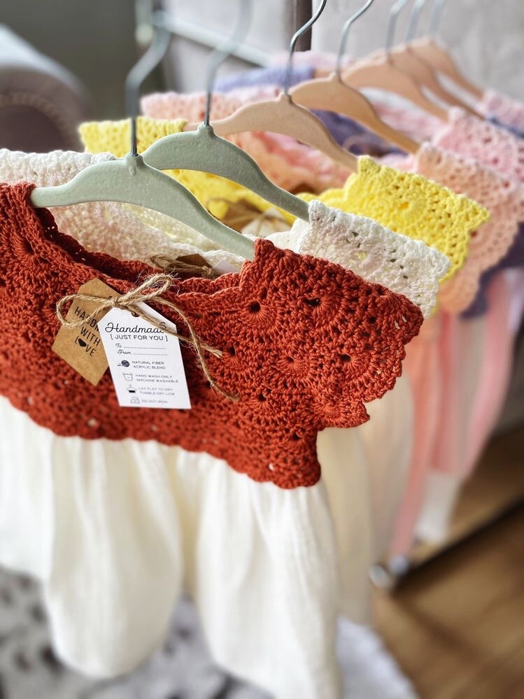 Вязание крючком в сочетании с тканью - один из интересных вариантов для детского и не только детского наряда. Сегодня посмотрим милейшие модели мастериц и воплотим что-то похожее для наших девчонок. Идея пришла в прошлом году моей маме, когда она ехала в поезде 4 дня на юг из Сибири. Всю дорогу она вязала полочки для будущий платьев, к концу пути почти довязала. Вязание - рукоделие, которым можно заниматься везде: в поезде, в очереди, в гостях, в ожидании чего либо коротать время. В Анапе кружевная часть платьев была довязана, оставалось найти подходящую ткань и сшить платья. Естественно, в отпуске заниматься этим мы не стали, т.к. у нас была очень насыщенная программа. А осенью такие платья были уже неактуальны, поэтому мамино вязание отправилось ждать своего часа в шкаф. Когда мы собрались в Сибирь в октябре, я прихватила с собой вязаные мамой кружева на всякий случай и после почти года путешествий они наконец-то превратились в платья. Их покажу вам в конце статьи. На этих фото те