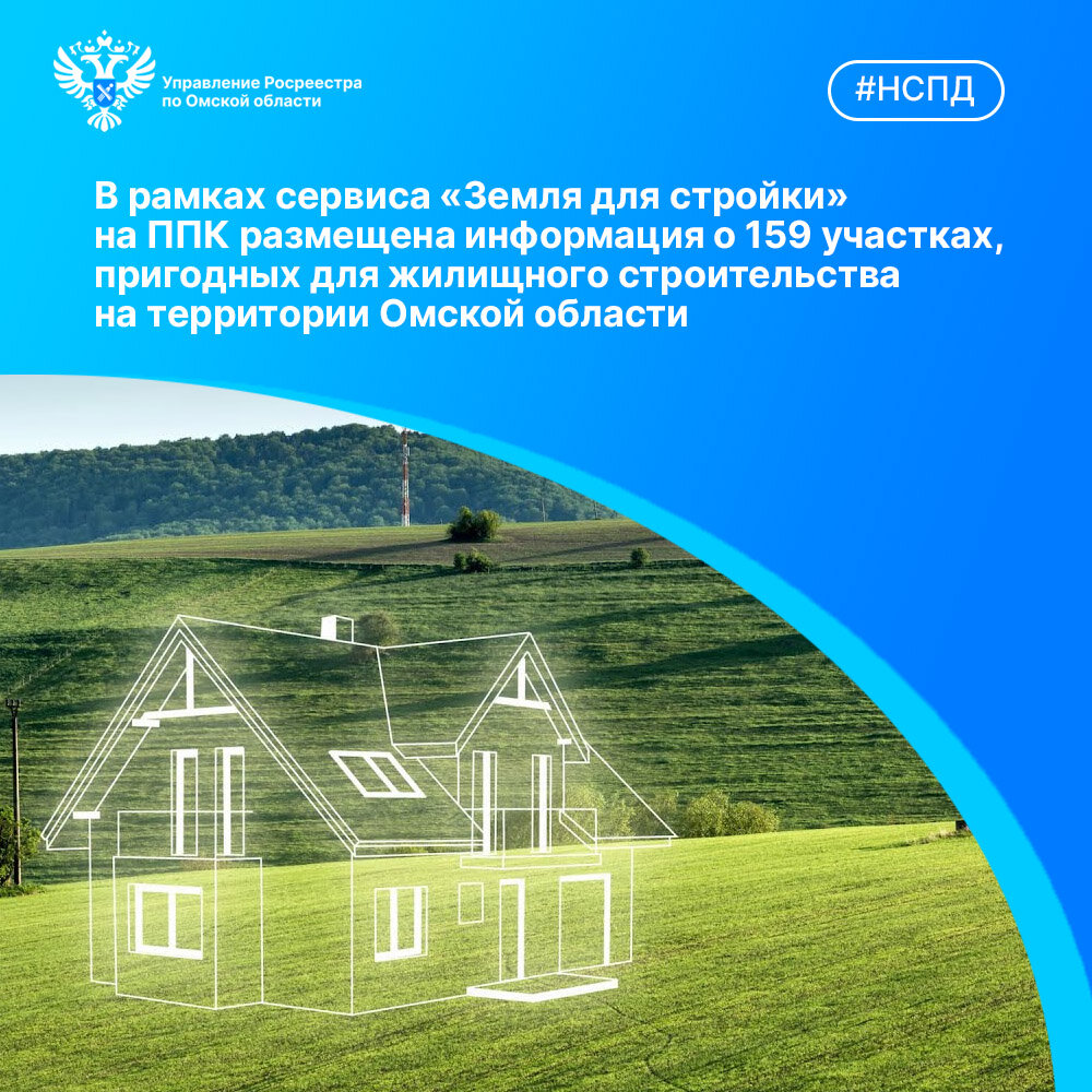Сервис «Земля для стройки» с отображением пригодных для строительства земель и территорий на Публичной кадастровой карте создан Росреестром с целью реализации поручений Президента и Правительства Российской Федерации по улучшению жилищных условий не менее 5 миллионов семей ежегодно и вводом жилья в объеме 120 млн кв. м в год. Планомерная работа по анализу эффективности использования земель ведется Росреестром в каждом субъекте с мая 2020 года в рамках оперативных штабов, созданных на уровне регионов, с привлечением представителей органов исполнительной власти и органов местного самоуправления. В настоящее время в «Банке земли» Омской области содержится 698 участков и территорий общей площадью 10 782 437,00 кв. м (1 078,2 га). Преобладающее большинство земельных участков имеет потенциал использования под индивидуальное жилищное строительство. С целью привлечения внимания инвесторов и застройщиков часть из них (более 22 %) размещена в рамках работы сервиса «Земля для стройки» на Публично