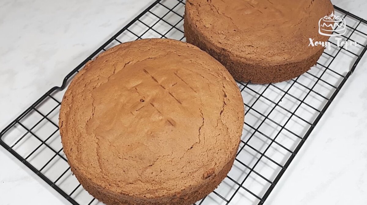Затем каждый бисквит можно разрезать на 2 части и собрать вкуснейший торт из четырёх коржей.