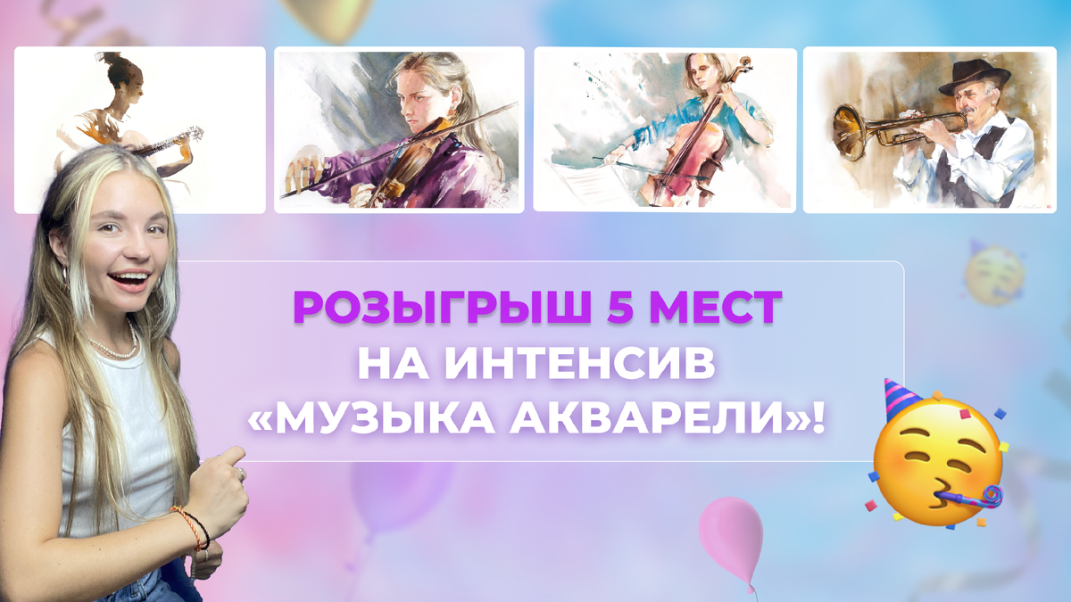 🎁 Мы к вам с отличными новостями! В честь запуска нашего нового интенсива «Музыка акварели» с Константином Стерховым, мы решили разыграть 5 мест на тариф «Минимум»!