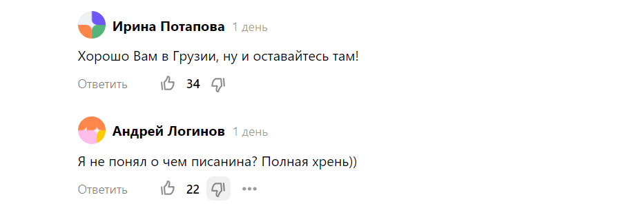 Пару дней назад я опубликовала на своем канале пост, где рассказала о том, что уже неделю нахожусь в Грузии, поделилась своими первыми эмоциями и впечатлениями. Так я делала и раньше – свой канал я веду с апреля 2019 года, то есть уже 4 года. На моем канале больше 30 тысяч подписчиков – единомышленников, влюбленных в Грузию, тех, кому интересно читать мои мысли и делиться своими. Но этот безобидный пост привлек совсем других людей – злых, обиженных, агрессивных. Я уже давно стала спокойно относиться к комментариям, к едким замечаниям. Иногда они по делу – я человек и мне, как и всем нам, свойственно ошибаться. Я умею признавать свои ошибки и смеяться над ними. Но в этот раз токсичность неожиданно для меня оказалась просто зашкаливающей. Делюсь с вами некоторыми такими комментариями – их авторы отправятся в бан за неуважение и хамство. Из 32 тысяч читателей того поста – лишь около 700 человек моих подписчиков. Кто эти остальные люди – я не знаю, но, подозреваю, что среди них немало тех,