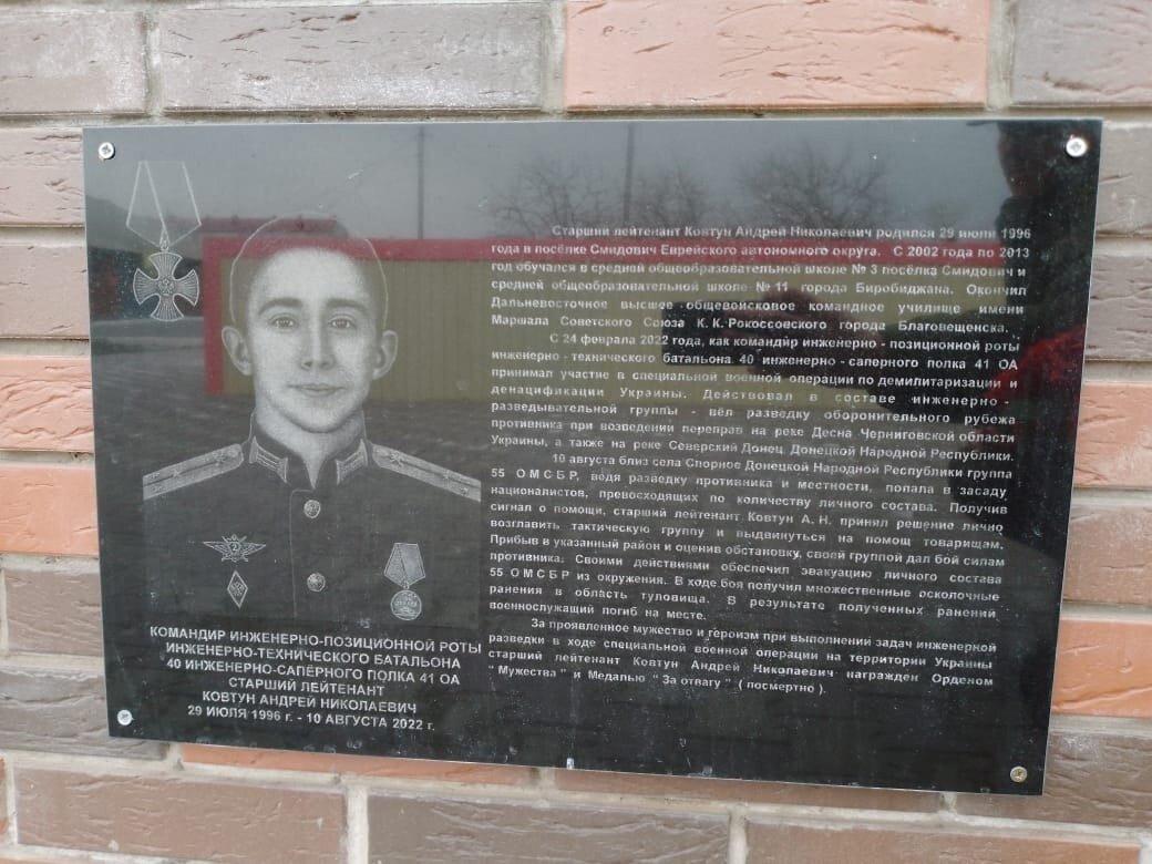 Андрей Ковтун принимал участие в военной спецоперации и погиб. Герой России Рустам Сайфуллин рассказал о сослуживце Андрее Ковтуне. В боевой обстановке тот проявил себя настоящим героем, пишет информационный центр правительства региона. Уроженец Еврейской автономной области служил в воинской части Ишима, командовал взводом в инженерно-саперном полку, созданном Рустамом Сайфуллиным, а с 24 февраля 2022 года принимал участие в специальной военной операции. Андрей Ковтун погиб 10 августа 2022 года. Его товарищи, проводя разведку, попали в засаду. Ковтун решил лично возглавить группу, которая отправилась на помощь. Бойцы столкнулись с превосходящими силами противника, но продолжили бой. Андрей подставил свою машину под огонь, сохранив жизни бойцам. За проявленные мужество и героизм удостоен звания Герой России посмертно. О судьбоносных встречах Андрея Ковтуна и жизни родных героя можно почитать здесь. Полковнику Рустаму Сайфуллину 40 лет, он родился в селе Вагай Тюменской области. Окончил