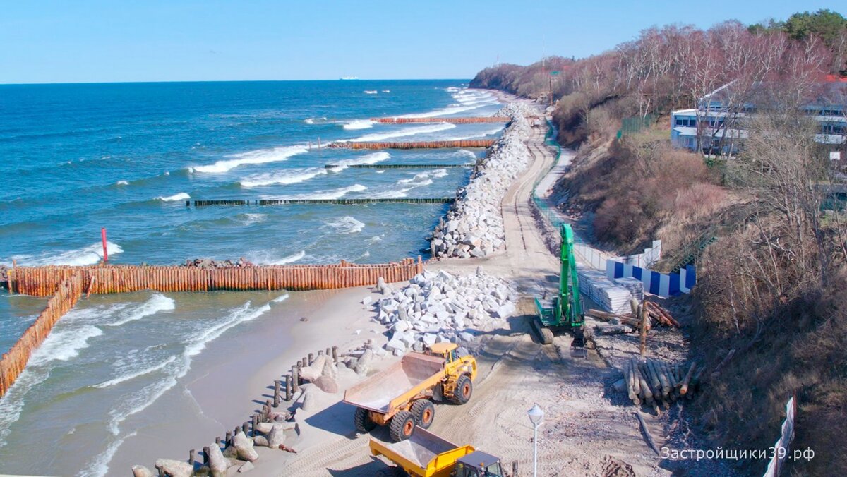 Новая набережная продлится примерно на 2,4 км — от нового променада в Светлогорске до порта в Пионерском. Его ширина составит порядка 20 метров. На нем разместятся пешеходная зона, велосипедная дорожка и проезд для технологического транспорта. При этом будут оборудованы спус
