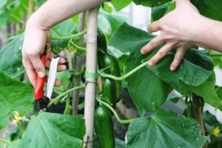 Для проведения прищипывания используются секатор или ножницы, делать это голыми руками нельзя. Ровный срез быстрее заживает, снижается риск болезни огурцов.