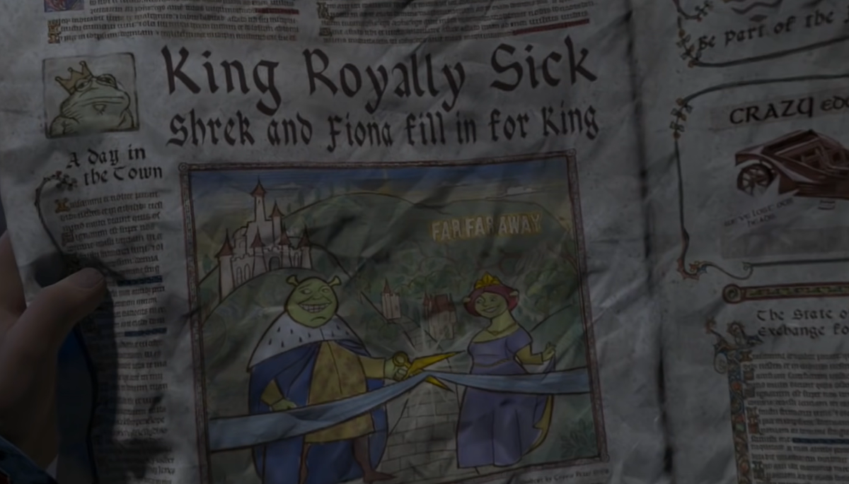 То-есть возможен ещё и такой вариант. Шрэк защищается от Чаминга и его злодеев, пытается отбиться, но либо сам Чаминг, либо один из его прихвостней вонзает меч в сердце огру и таки убивает его и Шрэк погибает, что печально. Огр, который не был рождён, как король и не жил как король, но за то хотя бы умер, как король, защищая свою родину. В этом плане Чаминг таки добился бы своей цели и стал бы всё таки королём тридевятого королевства, как он и добивался. Однако есть ещё и третий вариант, где Шрэк также сбегает вместе с принцессами и укрывается.