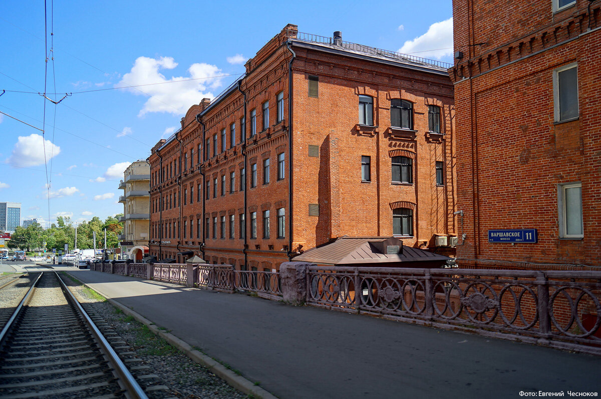 Варшавское шоссе, 9с1Б - производственный корпус (1873-1930-е годы, архитекторы Б.Фрейденберг, К.Трейман и другие) пережил немало реконструкций, сохранились решётчатые чугунные балконы знаменитого каслинского литья. В современном Деловом квартале зданию присвоено имя Кнопа.