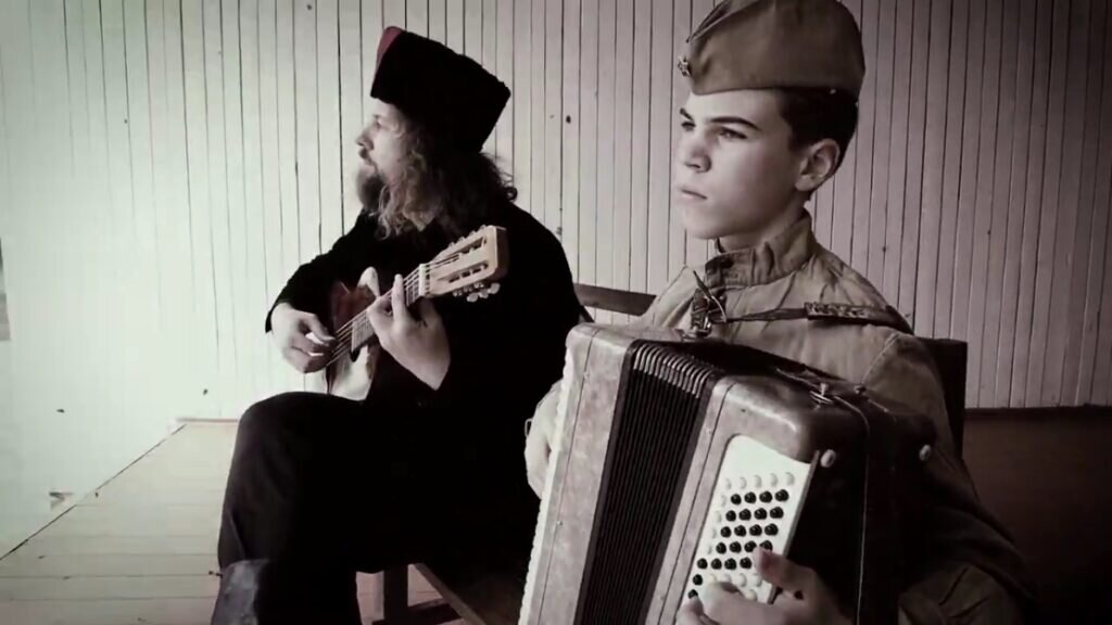 В клипе показано, как школьники рассматривают старые фотографии военного времени за своими партами. Когда играет пластинка на проигрывателе, зритель переносится в прошлое. Рассказ ведется от лица трех молодых девушек, которые поют известные патриотические песни.