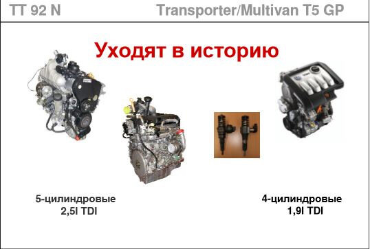 Материалы этой статьи дались не просто, как ценителю настоящего немецкого качества 90 –х годов и «адепта» семейного автомобиля с « передачей по наследству железного коня», было трудно заново переоценивать свою точку зрения . На автомобиле предыдущего поколения (Т4) было пройдено множество маршрутов от камней и гатей Карелии, до Астраханских затопленных пойм и до сих пор, Ваш покорный слуга считает его лучшим автомобилем в своем классе . Но наступил «черный» 2005 год и появился Т5 с новыми, »прогрессивными» насос-форсуночными моторами, я хорошо помню, работая в ОД в это время, как люди по инерции пытались также поддерживать этот агрегат, но очень быстро количество откровенно «сырых» и конструкционных и производственных решений превысило лимит терпения и путешественники сменили предпочтения на азиатские автомобили, ведь трудно пояснить человеку который мог доехать если «вдруг что « и на осветительном керосине на предыдущей машине, )), что у ЭТОГО мотора ПРОСТО может лопаться распределительный вал и или вылетать седла (2.5), гнать топливную стружку аппаратура высокого давления, вылетать седла, выходить из строя форсунки без возможности ремонта и даже захватывать с собой ЭБУ ДВС ((, что пружинная подвеска это совсем не торсион и т.д. и т.п. Потихоньку, среди контингента оставшихся любителей -бусоводов выработались основы более или менее рационального подхода к выбору конкретной модели, правило простое -«лучше меньше да лучше « и «старый конь борозды не испортит», таким образом остановились на старом, проверенном 2-литровом моторе )) . Но, пришло, как обычно, время когда такое более или менее стабильное положение дел производителя не устроило . Началось как обычно с лозунгов … ))