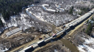 «Строительство моста не останавливалось и в зимний период. Сейчас мостовики ожидают завершения ледохода, чтобы продолжить работы с воды с использованием флота. На объекте задействовано 400 человек, используется 60 единиц техники. И главное — уже собран временный технологический мост. Он необходим для строительства двух наиболее сложных русловых опор, а после будет демонтирован», — рассказывал в конце марта вице-премьер РФ Марат Хуснуллин. Высота русловых опор составит от 37,8 до 46,2 м.