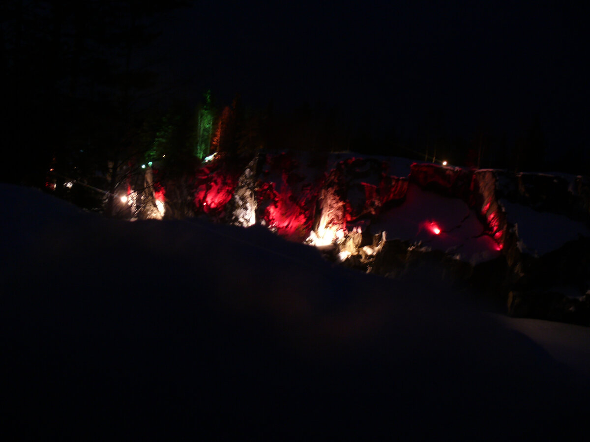 Когда вылезли из провала,то стемнело.Стены каньона подсвечены