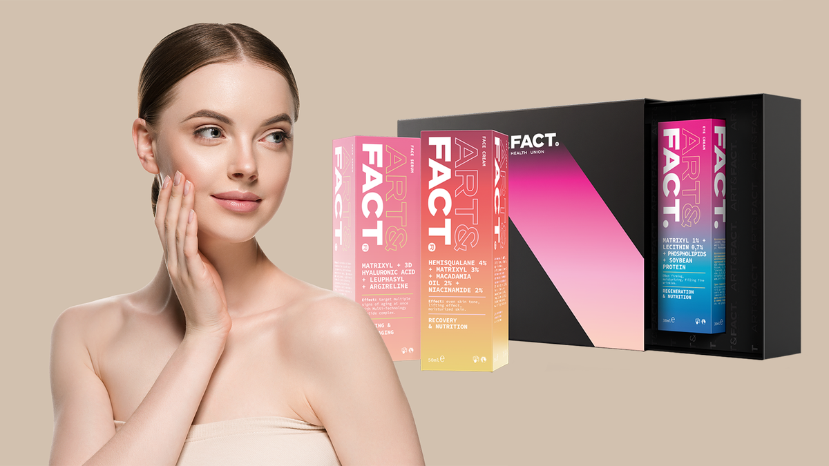 В подарочный набор антивозрастной косметики Art&Fact с пептидным комплексом Matrixyl® входят три средства, которые помогут выстроить полноценную антивозрастную программу или дополнить имеющуюся.