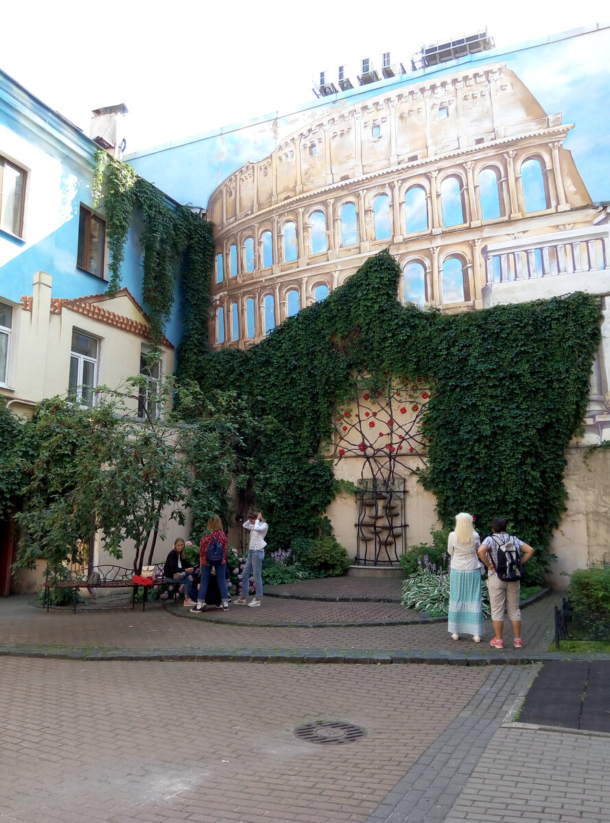 Италия в Петербурге. Красивый двор с расписанными стенами.