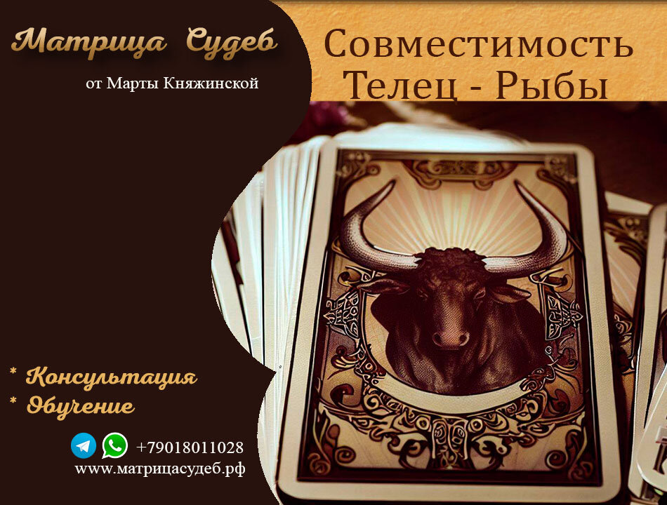 Они тянутся друг к другу, но, оказавшись вместе, стремятся в разные стороны. Магически это выглядит так: Телец и Рыбы говорят на одном языке, но выводы, которые они делают, различны. Также различаются и их реакции, в том числе и эмоциональные, и оценки одних и тех же событий. Телец более материален и тверд, Рыбам нередко приходится приносить себя в жертву и двигаться против течения своих душевных устремлений. Если говорить об интимной стороне, то Телец ценит то, что Рыбы могут ему дать, а Рыбы чувствуют, что тому надо. Так что и здесь Телец ведет первую партию и пользуется Рыбами в своих целях. Любовь у пары спокойная, без экзальтации и излишней романтики. Они друзья и соратники — какая уж тут страсть. Телец уверен: его Рыбка должна сидеть дома и нести на своих плечах всю «прелесть» бытовых забот. Стремление Тельца к успеху и карьере больно задевает Рыб, поскольку ограничивает их во всем. И если Телец готов надрываться на службе, то Рыбы готовы не щадить себя, занимаясь дома