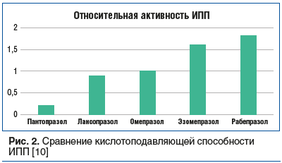 *Информация основана на клиническом опыте и соответствует актуальным клиническим рекомендациям по лечению. Некоторая часть информации взята из литературы и представлена в виде краткого обзора. Данная информация не предназначена для самостоятельного лечения и содержит противопоказания. В случае необходимости следует обратиться к специалисту. Гастроэзофагеальная рефлюксная болезнь (ГЭРБ) по-прежнему остается актуальной проблемой. Исследование, проведенное в США с участием 71 812 человек, показало, что 32 878 (44,1%) респондентов когда-либо испытывали симптомы ГЭРБ, а 23 039 (30,9%) сообщили о наличии этих симптомов на момент опроса. Преимущественно кислый характер рефлюктата наблюдается лишь у половины больных ГЭРБ; кислый рефлюкс с желчным компонентом — у 39,7%, а желчный рефлюкс — у 10,3%. Согласно мета-анализу 57 исследований по оценке среднесуточной рН желудка, рабепразол обладает наибольшей кислотоподавляющей способностью. Относительная активность омепразола принята за 1,0; рабепраз