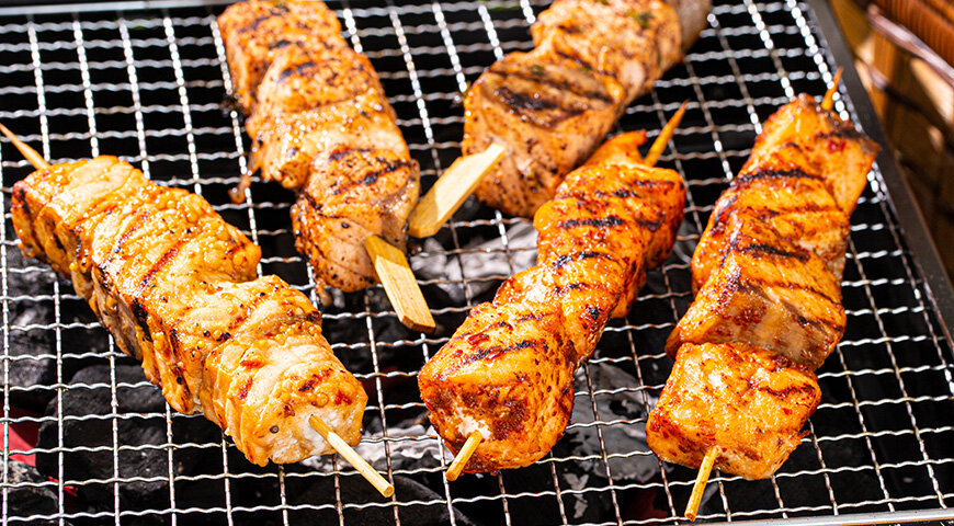 В этой подборке делимся секретами необычных маринадов, способов приготовления и неожиданных сочетаний от шеф-поваров. Попробуйте приготовить грибной и овощной шашлыки, которые найдут отклик не только в сердцах вегетарианцев, но и среди поклонников мяса и рыбы. Впрочем, рыбу, птицу и мясо мы также не оставили без внимания. Изысканные соусы и яркие салаты, которые мы подобрали к каждому из блюд, дополнят и раскроют вкус нежной подмаринованной форели, сочной грудки индейки и пряной баранины. А удивительный стейк из баклажана с устричным соусом, страчателлой и облепихой точно запомнится вашим гостям надолго.