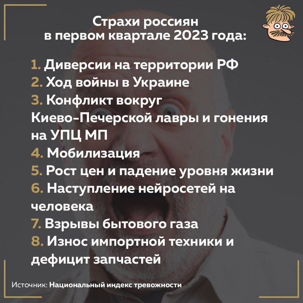 Здравствуйте, товарищи! Эта картинка с другого канала, я так не умею. Итак, чего больше всего боятся Россияне в 2023 году?! Так! А я не поняла – где гендеры? Я Вас спрашиваю – почему никто не боится этих, прости господи, гендеров? А кто-нибудь знает – это вообще ХТО? Зато, я знаю тендеры. И вот, когда, эти гендеры начинают пилить тендеры, то получается сплошное ЛГБТ. А еще, что характерно – наступление нейросетей пугает, а НАТО у наших границ, вроде, как и нет. Бедные...бедные головушки моих дорогих Россиян. Держитесь, мои хорошие! Спасибо за внимание!