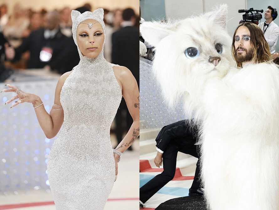 Отгремело главное событие мира моды — Met Gala 2023. Это благотворительный бал Института костюма Метрополитен-музея в Нью-Йорке. Темой мероприятия стало творчество легендарного модельера Карла Лагерфельда. Сейчас узнаешь, как ковровая дорожка «превратилась» в чёрно-белую, кто мяукал громче всех и при чём здесь таракан. Беременность Серены Уильямс Больше всего шуму навёл выход Серены Уильямс. Обсуждали вовсе не её роскошное платье от Gucci, а округлившийся живот. Теннисистка ждёт второго ребёнка вместе с бизнесменом Оганяном Алексисом. Поздравляем! Полный «мяу» Верным другом Лагерферльда всегда была кошка Шупетт. К слову, именно ей дизайнер завещал всё своё состояние. Закосплеить пушистого попытались многие селебрити, но в образ попали только Джаред Лето и Doja Cat. Солист Thirty Seconds to Mars выглядел как аниматор детского праздника. Его соперницей стала Doja Cat, которая «сделала» ринопластику и «отрастила» милые ушки. Обязательно послушай, как мурлыкала рэперша. Любовь на ков