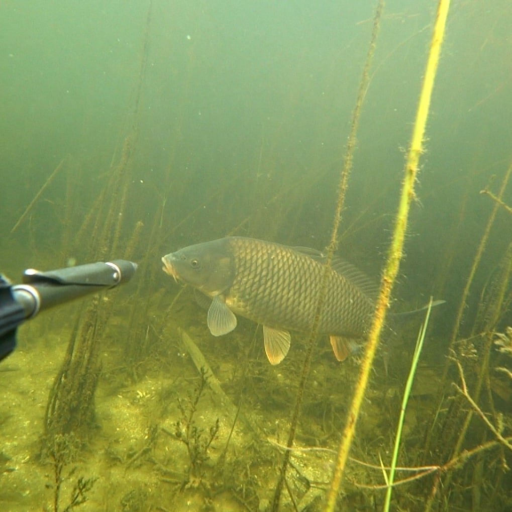 Охота на сазана это одна из любимым моих охот, но можно ли её назвать спортивной? Поиски сазана всегда начинаю с края редкого камыша, и если никого нет по краю иду в глубь. Летом сазан шуглив, и пробираясь через камыши нужно делать не большие залежки не более двух минут(моё мнение) так как пока ломишься через камыш рыба вряд ли выйдет сама, скорее всего максимум увижу сход и в этот момент нужно делать залежку убедившись что рыба есть. Как правило не крупный сазан 2-3кг не даёт подумать над выстрелом, и охота на него действительно очень спортивная)) выстрелы в основном на вскидку. Но крупный сазан напротив очень любопытный и за частую сам выходит посмотреть кто там ломится. Не имея естественных врагов он максимально в себе уверен)) Всех сазанов 8кг+ я брал на мини лежках в камыше. Они выходили сами, медленно, красиво, как на битву взглядов)) Тем не менее его нужно найти и вовремя сделать паузу, что бы он сам вышел. Либо увидев аккуратно подойти к нему.