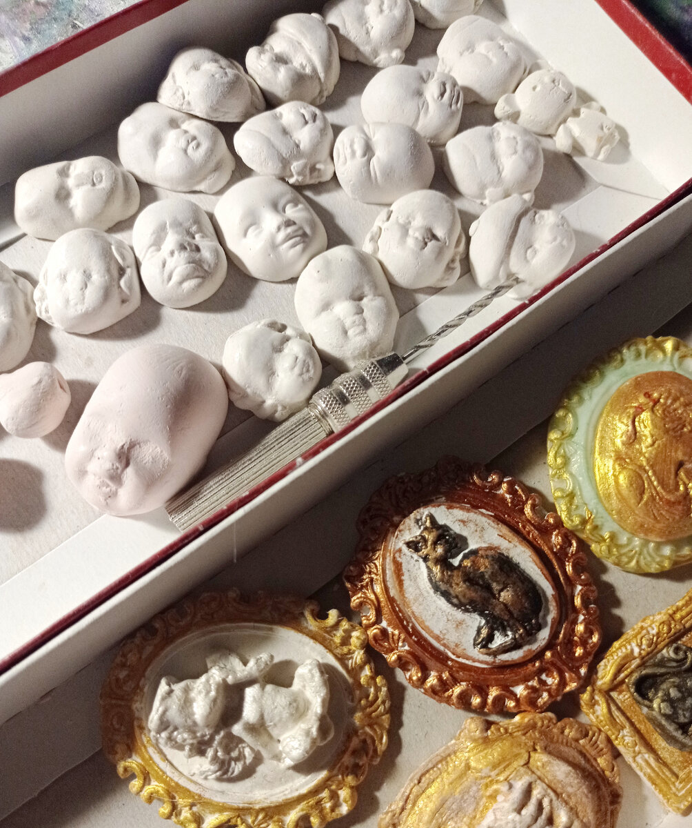 Вот нашлёпала личики с разными эмоциями.Использовала молды силиконовые, которые купила, какие-то несколько лет назад ещё купила, да так и лежали без дела.