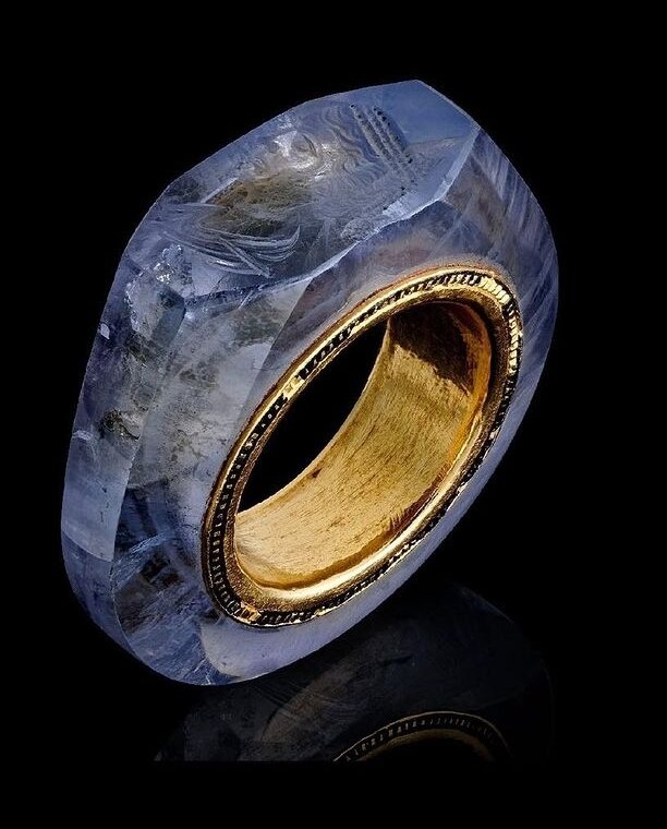 Жил когда то такой извращенец император Калигула, любил всякие темные аморальные делишки, в общем запомнился этот тиран людям как какое то недоразумение. Короче, подданные с ним намучились, да так, что в итоге его свои же сподвижники и отправили на тот свет. Кстати, Калигула это прозвище дали ему легионеры, значит солдатский сапог. Но не об этом сейчас идёт речь. Было у Калигулы четыре жены, и одна из последней была Сидония Цезония, баба так себе была, на любителя, но именно ее Калигула любил как не любил не одну из предыдущих жен. Так вот, эта дамочка родила Калигуле единственного законорожденного ребенка, дочь Юлию Друзилла и видимо за это стала украшением уникального сапфирового перстня с золотым кольцом внутри. Больше всего удивляет, как примитивными инструментами мастер ювелир смог выгравировать изображение Сидонии внутри сапфира. Более того, даже на фотографиях видно, что рисунок объемный. И это якобы примитивные технологии двухтысячелетней давности. Ваши предположения, как др