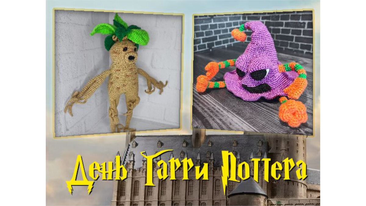 День Гарри Поттера (Вязаные игрушки, корень Мандрагоры, Распределяющая шляпа)