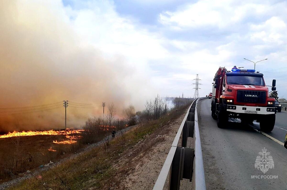 Тюменские пожарные справились с горящей сухой травой на Тобольском тракте