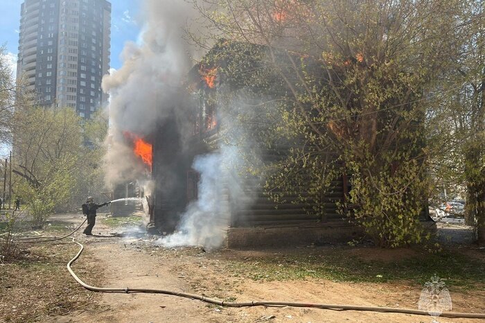 Деревянный дом по улице Авангардной, в котором некогда жили первые строители микрорайона Уралмаш, загорелся сегодня днем в Екатеринбурге, сообщает агентство ЕАН. Сообщение о возгорании поступило на пульт диспетчера в 13:05. Как сообщает Telegram-канал свердловского ГУ МЧС, на площади 250 кв. метров горел двухэтажный расселенный многоквартирный дом барачного типа. Существовала угроза распространения огня на соседний жилой дом. "Пожарные прилагают все усилия для скорейшей ликвидации пожара. Причину возгорания устанавливают пожарные дознаватели", - сообщает спасательное ведомство. Дым от пожара был виден из центра города. Ранее об истории этих деревянных домов, составлявших соцгородок Уралмаш, рассказал историк, экскурсовод Дмитрий Москвин.