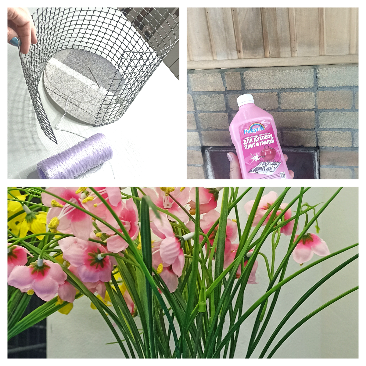 Хочу сделать корзиночку ( дно из остатка линолеума, а каркас из садовой сетки. Сшиваю и затем буду обвязывать шпагатом). Я вам обязательно покажу мастер-класс. Будет отдельное видео!
