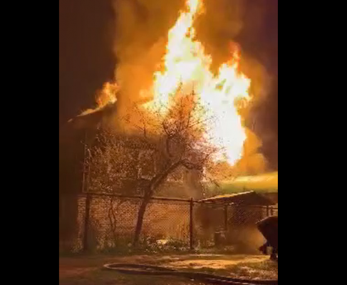 Огонь вспыхнул в хозяйственной пристройке, и быстро перекинулся на кровлю жилого здания