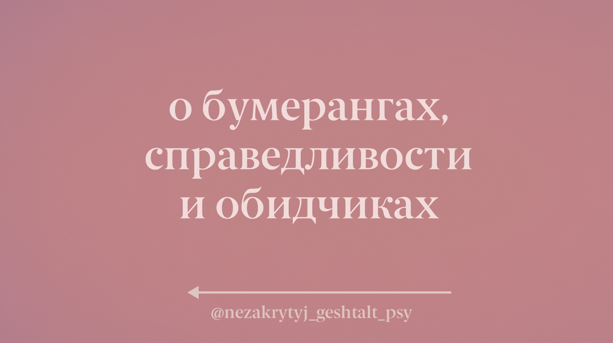 Тот, кто ожидает постоянно бумеранги для Другого или желает наступление бумерангов Другому ведь прекрасно отдает себе отчет, что это только его внутренние процессы и его мировосприятие а также его воля - наступление негативных последствий Другому. Не надо прилеплять это к феномену справедливости, это разные процессы. Тут хочется отметить, что справедливость это достаточно абстрактная категория, как и безопасность. Однако существуют реальные инструменты восстановления социальной справедливости в рамках правового поля - каждый имеет право защищать свои права и законные интересы, а также себя от недобросовестных посягательств. Активными и правомерными действиями, это нормально. Эти процессы привязаны к объективной действительности и подразумевают экспертизу. Это реальный инструмент по отстраиванию собственной безопасности. Люди, тыкающие всем подряд о бумерангах вызывают не меньшую озадаченность, чем те, на чьи фигуры направлена на самом деле такая агрессия - откуда такая фиксация на "фен