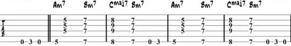 Аккорды для джазовой гитары могут показаться сложными и пугающими, новичку сложно понять, с чего начать. Многие, впервые учась играть джазовые аккорды, пугаются их звуков и особенно форм аккордов. Джаз на гитаре играется точно так же, как и на других инструментах. Однако стоит понимать, что классические аккорды, гаммы и пентатоники в данном жанре не всегда подходят. Эта статья поможет вам познакомится с джазовой игрой на гитаре. Самый простой и, главное, веселый способ практиковать джазовые аккорды - это играть не просто их последовательности, а аккорды, которые складываются мелодию. Ниже приведены табулатуры аккордов, которые вам помогут их освоить: Еще ниже ссылка на видео, для лучшего понимания как играть данную мелодию.