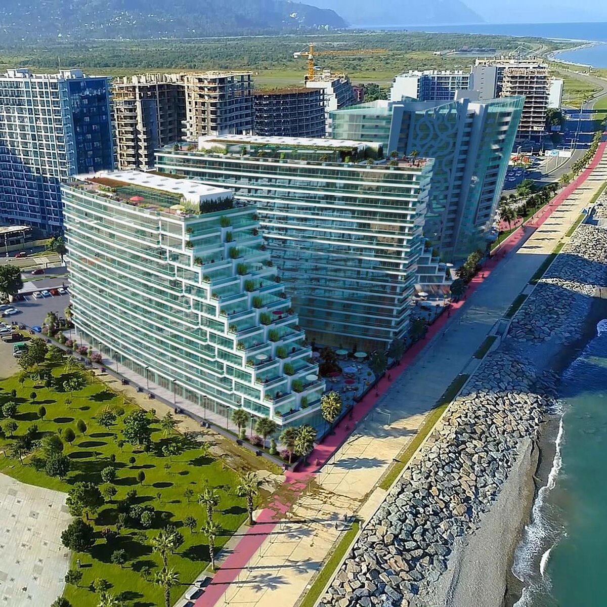 Продаются квартиры в жилом комплексе премиум-класса Batumi View на черноморском побережье Грузии. Многофункциональный гостиничной-жилой комплекс Batumi View относится к сегменту элитной недвижимости благодаря нескольким параметрам. Первый – вид на море. Три здания комплекса расположены веерообразно. Благодаря такому оригинальному архитектурному решению вид на море имеют все квартиры. Из окна – море как на ладони. Просыпаешься, открываешь окно – и слышишь шум прибоя. Непередаваемые ощущения. Второй – уникальное расположение. Жилых зданий, расположенных так близко к берегу (всего в 20 метрах), в городе практически нет. В районе – чисто и тихо. Вокруг комплекса – частные дома с низкой плотностью застройки. Рядом разбит городской парк отдыха с зелеными насаждениями и тропинками для прогулок. Панорамный обзор ничего не загораживает. Третий – удобная планировка. Большие балконы и панорамные окна подчеркивают видовые характеристики. Фасад со стороны моря выполнен в форме каскада – за счет это