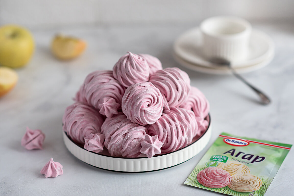 Зефир «Яблоко-черная смородина-клубника» --- 👉Вам понадобится: • Яблочное пюре - 160 г • Ягодное пюре (микс черной смородины и клубники) - 90 г • Белок комнатной температуры СО - 1 шт. --- Для сиропа: • Вода - 160 мл • Агар Dr. Bakers - 1 упаковка (7 г) • Сахар - 450 г --- Для обсыпки: • Сахарная пудра универсальная Dr. Bakers - 1 упаковка (60 г) 👉Способ приготовления: ① Яблоки режем на дольки, удаляем семена, выкладываем на противень, застеленный пергаментной бумагой. Запекаем в духовке при 180°C около 20–30 минут (до мягкости). Пробиваем блендером в пюре. ② В кастрюле соединяем замороженные ягоды клубники и смородины и провариваем до тех пор, пока у смородины не треснет кожица. Остужаем, пробиваем блендером. ③ В чаше миксера соединяем яблочное, ягодное пюре и белок. Взбиваем до получения пышной густой массы (чтобы при переворачивании чаши масса не растекалась, а держала форму). ④ Пока взбивается пюре с белком, приготовим сироп. В кастрюле соединяем воду, агар. На среднем огне довод