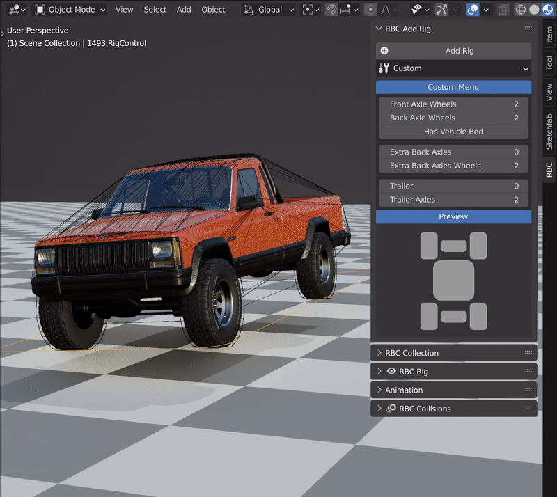 Особенности: БЫСТРЫЙ РИГГИНГ Функция быстрого риггинга, включенная в RBC Addon Pro, является мощным инструментом, который позволяет вам настроить функциональную автомобильную установку всего одним щелчком мыши. Эта функция делает процесс создания очень быстрым и эффективным, позволяя вам создать функциональный скелет всего за несколько секунд. НАСТРОЙКА Меню настройки превращает риггинг транспортного средства в простой и понятный процесс. Удобный интерфейс позволяет легко получить доступ к различным