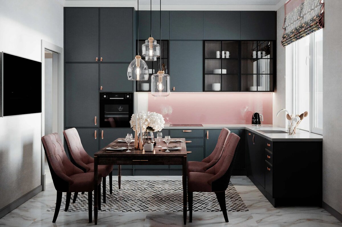 Ультрамодная цветовая гамма с плотными и насыщенными оттенками серого, марсала, морской волны прекрасно сочетается с классической раскладкой на стенах и декоративной штукатуркой. А такая оригинальная отделка, как фрески, декоративные панно и рельефные панели выполняют в обстановке функцию интерьерных акцентов.