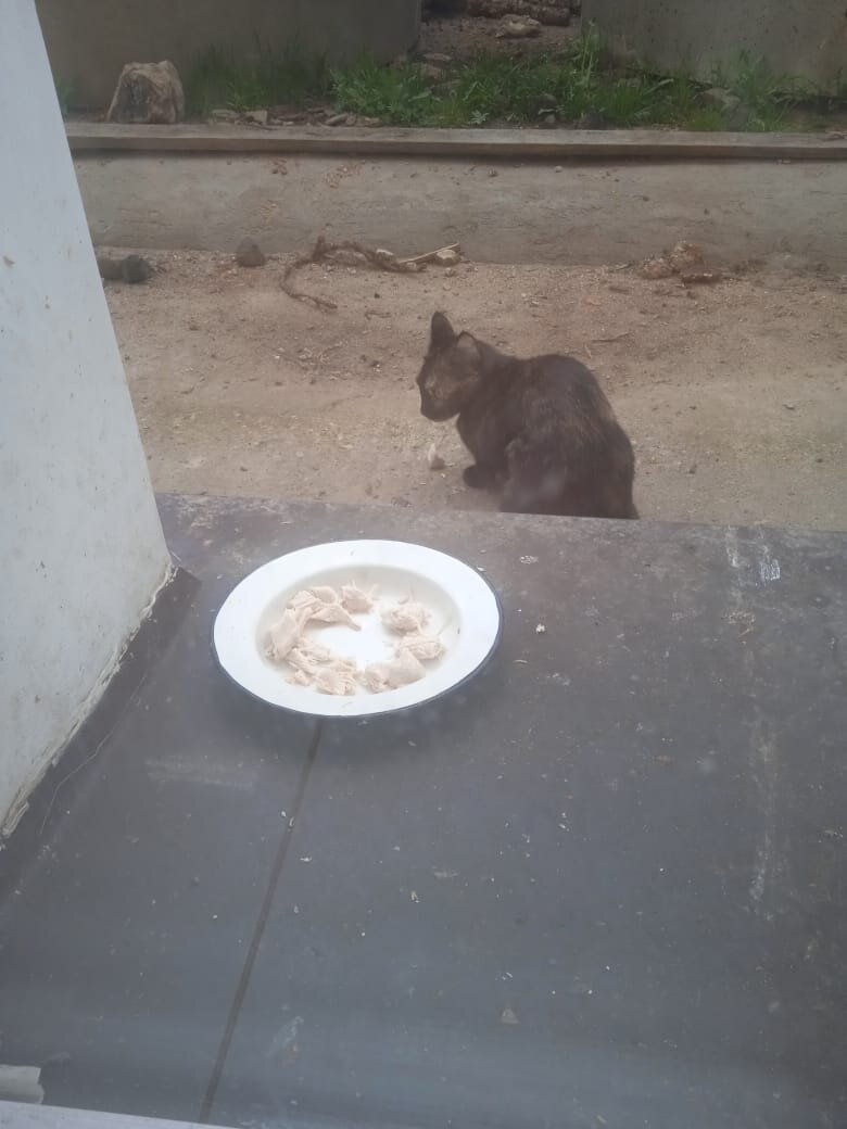 Алиска приходит покушать. Их там кормят хорошо))). Сегодня сосиски и куриный гуляш. Улица, это ее стихия. И аппетит сразу есть. А человек для нее стрес. Ну, мы для нее сделали все по максимуму. Теперь срочно бы отловить беременную кошку. А то это не остановить.