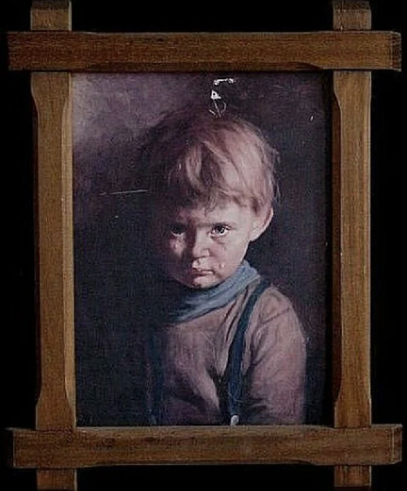 Искусство, безусловно, способно влиять на человека. Оно вызывает мысли, эмоции, заставляя плакать или смеяться. Но есть искусство, способное навести тревогу, окутанное мистикой, и вызывающее совсем не положительные эффекты. Например, некоторые картины у многих вызывают головокружение и тошноту, а после просмотра других люди покончили жизнь самоубийством. Вашему внимания представлена картина «Плачущий мальчик» — одна из самых известных «проклятых» полотен, репродукция картины испанского художника Джованни Браголина. История создания ее такова: художник хотел написать портрет плачущего ребенка и в качестве натурщика взял своего маленького сына. Но, поскольку малыш не мог плакать на заказ, то отец специально доводил его до слез, зажигая перед его лицом спички. Художник знал, что его сын панически боялся огня, но искусство было ему дороже, чем нервы собственного ребенка, и он продолжал над ним издеваться. Однажды доведенный до истерики малыш не выдержал и крикнул, обливаясь слезами: «Гор