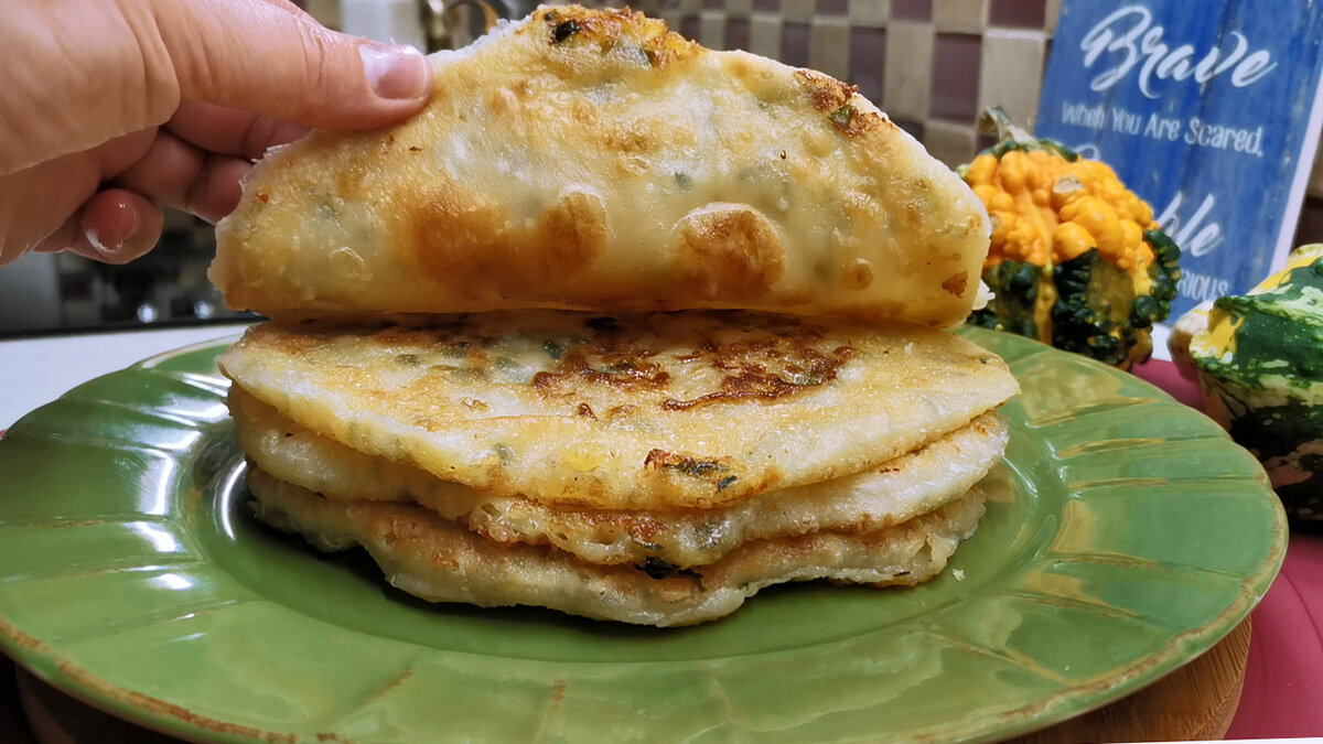 Такие лепешки на самом деле можно готовить хоть каждый день. Это очень быстро, да еще и бюджетно. Тесто простейшее, замес за 5 минут. А начинка картофельная и совсем немного сыра. Проще не бывает и все это всегда есть под рукой. Духовка не нужна, жарим на сковороде. К чаю, на завтрак, для перекуса - всегда уходят со стола в момент. Все ингредиенты и их количество есть в конце статьи. Как приготовить: Начинаем с теста. Наливаем в миску воду чуть теплее комнатной температуры. Добавляем соль и взбалтываем вилочкой до растворения крупинок. После этого всыпаем муку, просеивать ее не нужно. Перемешиваем той же вилкой, просто совсем слегка. Затем вливаем немного растительного масла. И теперь уже вымешиваем тесто руками, пока оно не перестанет липнуть. Муку больше не добавляем. Просто усердно месим минутки 3-4. Все! Тесто готово. Оставляем его отдохнуть на 15 минут. Можно вот так накрыть пиалкой, можно положить в пакет. Тем временем занимаемся начинкой. Картошку отвариваем заранее и разминаем