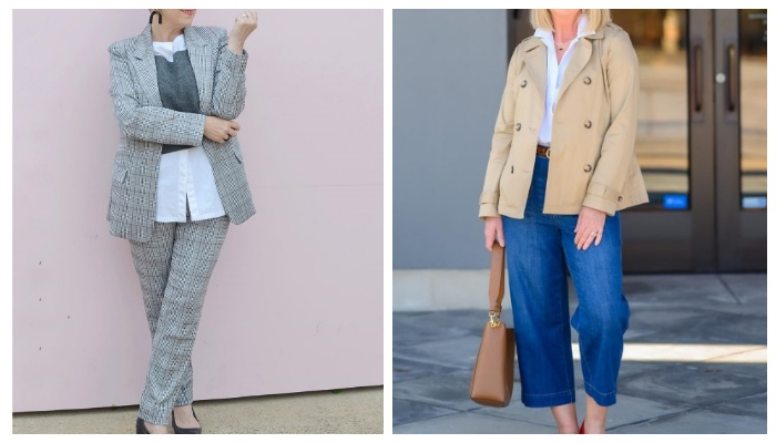 Правильно составленные образы способны визуально сделать внешность зрелых дам моложе и привлекательней. Научить этому волшебству помогут стилисты, которые знают самые эффектные сочетания в одежде. Оставайтесь с нами, прямо здесь и сейчас вы узнаете, на какие пункты стоит обратить внимание женщинам зрелого возраста. Выбирайте белые оттенки. Светлые монохромные аутфиты визуально освежают внешность, скрывают следы усталости на коже. С белыми нарядами можно всячески экспериментировать, дополняя их разнообразными контрастными аксессуарами. Не бойтесь принтов. Чтобы социум обратил на вас внимание иногда нужно выйти из зоны комфорта, например, нарядиться в шелковую рубашку и миди юбку в звериный принт. Разнообразьте гардероб классикой. Белая рубашка + черные брюки или джинсы будут выглядеть всегда выигрышно и уместно. Модный в этом сезоне принт «полоска» сделает фигуру стройной. Перед вами идеальный аутфит на каждый день, который включает в себя принтованную рубашку в полоску, теплый кашемиро