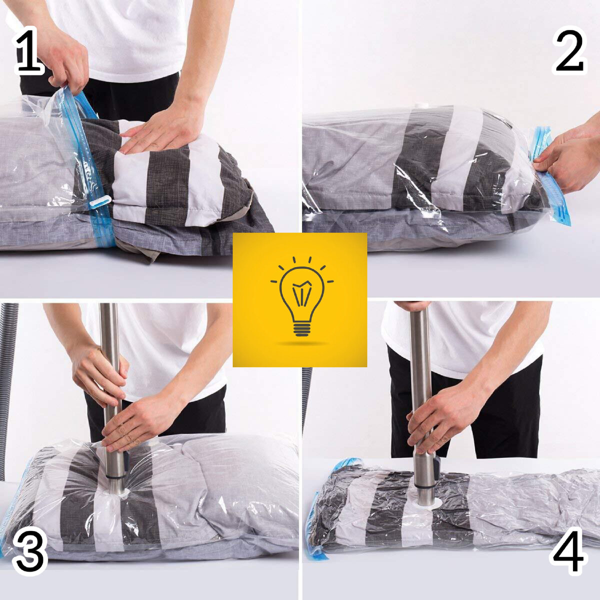 Организация хранения вещей - это незаменимая часть жизни. Чтобы было больше дополнительного места в шкафу, можно использовать вакуумные пакеты для вещей. В них очень удобно хранить куртки, одеяла, подушки и т.д. Благодаря им, объемные вещи займут меньше места в вашем гардеробе.