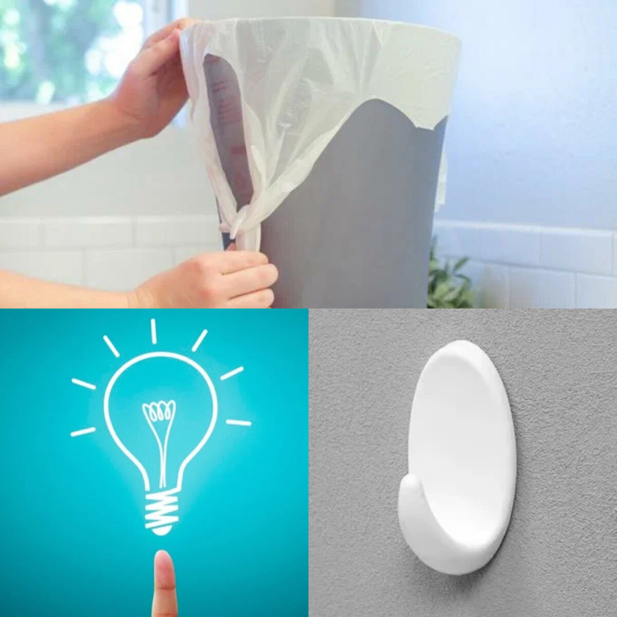 Вы сможете облегчить себе уход за мусорным ведром! Просто приклейте крючки к мусорному ведру, чтобы цеплять за них завязки от пакета. Тем самым пакеты будут хорошо закреплены и не будут съезжать.