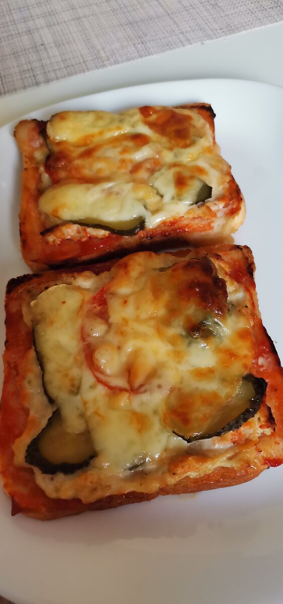 Похожий рецепт я увидела на просторах интернета. Подробностей не помню, поэтому сделала, как посчитала вкусным) Получилось и правда замечательно. Остановиться сложно, а готовится легко. Итак нам понадобится: Фарш, у меня было примерно 300 гр Кетчуп Огурцы маринованные Помидор свежий Сыр И конечно хлеб. Хлеб может быть любой, у меня для тостов. Выкладываем хлеб на смазанный растительным маслом противень. Каждый кусочек промазываем кетчупом. Затем выкладываем фарш тонким слоем. Фарш предварительно я немного посолила и добавила специй для курицы. Сверху кусочки огурцов и помидоров. Затем сыр. Я нарезал кусочками, но можно и натереть. В духовку при 180С. Запекаем примерно 15 минут. Посмотрите, какая это вкуснота! Хлеб можно брать любой, не обязательно как я тостовый. Фарш тоже может отличаться. У менч куриный, но отлично получится и с говяжим и с не жирным свинным. Сыр лучше тот, который хорошо плавится, но тоже не обязательно) Приятного аппетита!