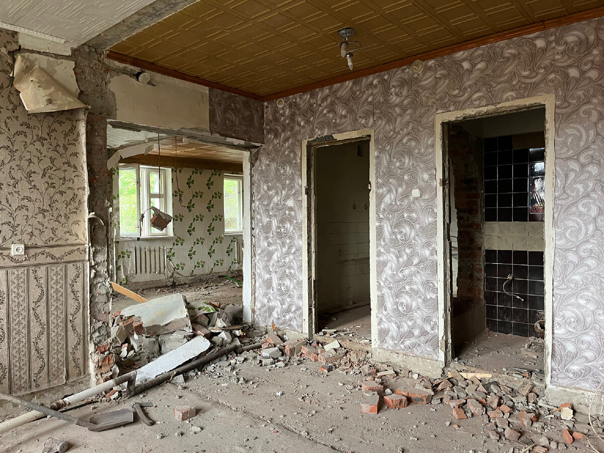 Почти четыре дня «бомбили» мой дом рабочие. Зрелище ужасающее. Самой страшно видеть эту разруху. Ну, это не первая моя разруха. Также я делала ремонт в своей старой «хрущёвке». Ремонт с нуля делали у дочери в новом доме. И ещё у родственника делали ремонт после покупки «хрущёвки». Она была в ужасном состоянии. Так что опыт небольшой есть! 😄 И всё равно каждый раз такой разрушительный ремонт страшит и волнует. На сегодняшний день в доме сломали всё, что нужно было сломать. Прорубили все проёмы, которые нужно было прорубить. Теперь начнём созидать. Рабочие вымерили все проёмы, где будут закладываться стены. Расписали где и какой материал мне нужен на первое время. Мне нужно все материалы закупить в ближайшие дни, пока не будет моих рабочих. Рабочие ушли на другой объект, заливать бетоном фундамент. Они не могут стоять на месте. Им нужно зарабатывать деньги. За всю эту работу, что они провели у меня я заплатила 80 т. рублей. Следующая работа будет оплачиваться отдельно. Расценки н