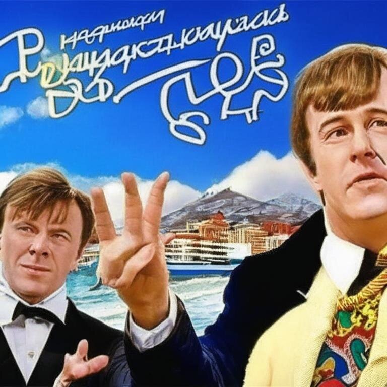 В преддверии длинных выходных предлагаю вам немного расслабиться и полюбоваться на очередные измышления нейросети на тему кинематографа в целом и нашего с вами отечественного кинематографа в частности. Сегодня мы слегка поменяем правила игры. Я буду предлагать вам для опознания перерисованные нейросетью афиши известных фильмов. Не подведите! ))) Фильм номер Раз Кто же эти красавчики на фоне гор и моря? Кто они??? Фильм Номер Два Хочется весело пошутить, но как-то... стремно. А вы не тушуйтесь, угадывайте! Фильм Номер Три Что-то, чем дальше, тем страшнее... Ладно, прорвёмся! И не таким нейросетям дули крутили! Фильм Номер Четыре Как мне кажется, это самый простой вопрос. Хотя зачем там что-то вроде иероглифов - загадка. (А вот лошадка, вроде, знакомая... Но об этом - в статье с ответами!) В общем, на сегодня всё, развлекайтесь! Как всегда, ваши правильные (ай, ладно! любые!) ответы с интересом жду в комментариях. )))