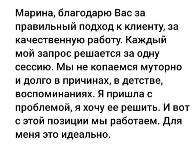 Приветствую, Друзья! Сегодня хочу разобрать актуальную тему о том, как правильно работать с психологом, чтобы получить результат и быть довольным. Чтобы остаться довольным от работы с психологом клиент доложен четко ответить себе на один вопрос: Какой результат я ожидаю от совместной работы с психологом? Просто так «от хорошей жизни» к психологу не приходят, обычно обращаются ЗА ПОМОЩЬЮ! Что за помощь оказывает психолог во время консультации? Два типа помощи: 1. Поддержка. Моральная поддержка если быть точнее. Консультация проходит в виде внимательного слушания, безусловного принятия, понимания, совместного проведения времени. Психолог проявляет к клиенту эмпатию в виде попытки понять его чувства, мысли и действия, вчувствоваться в ситуацию клиента, побыть на его месте для большего понимания состояния. Иногда психолог даже может прикоснуться к клиенту, положить руку на плечо, взять за руку или обнять в знак поддержки или одобрения. В результате такого взаимодействия клиент получает рес