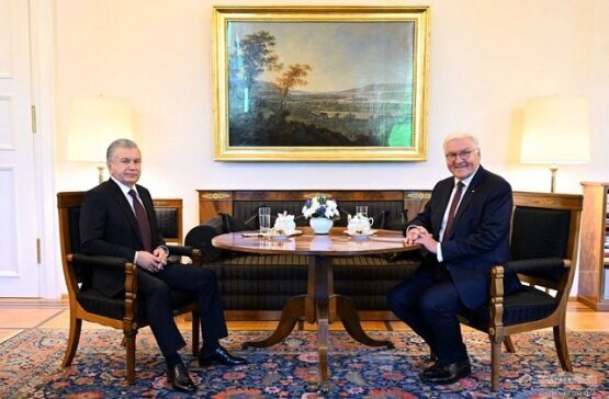 Президент Узбекистана Шавкат Мирзиёев в рамках официального визита в Берлин 3 мая провёл встречу с главой Германии Франк-Вальтером Штайнмайером. Собеседники рассмотрели широкий круг вопросов двустороннего сотрудничества, а также отметили важность вывода двусторонних отношений на новый уровень. Об этом Sng.today сообщили в пресс-службе узбекского лидера. Основное внимание президентов двух стран было уделено вопросам культурно-гуманитарного обмена. В связи с этим, высокопоставленные лица приветствовали открытие в Берлине уникальной выставки культурно-исторического наследия Узбекистана. Также между сторонами была достигнута договорённость о подготовке комплексной Программы по изучению немецкого языка в регионах Республики Узбекистан, в том числе при помощи последовательного расширения деятельности Института Гёте в регионах страны. По результатам двусторонней встречи, состоявшейся в конструктивном ключе, узбекский лидер пригласил своего германского коллегу посетить Ташкент удобное для него